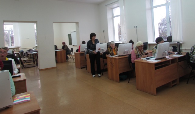 Занятия по английскому, немецкому языку проходят в творческой атмосфере, пенсионеры с удовольствием готовят домашнее задание, занятия проходят плодотворно и весело. Проводится цикл занятий по правовому обучению, с 1 октября «студенты» обучаются по основам компьютерной грамотности на базе средней школы № 2.