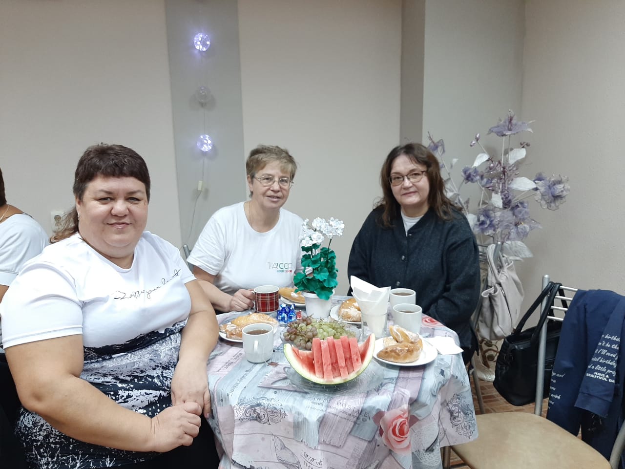 За победу в каждой номинации председатель местного отделения Союза пенсионеров и руководитель Клиентской службы (на правах отдела) в Камско-Устьинском районе РТ вручили подарочные сертификаты. Завершилось наше чаепитие с пирогами фруктами и сладостями.