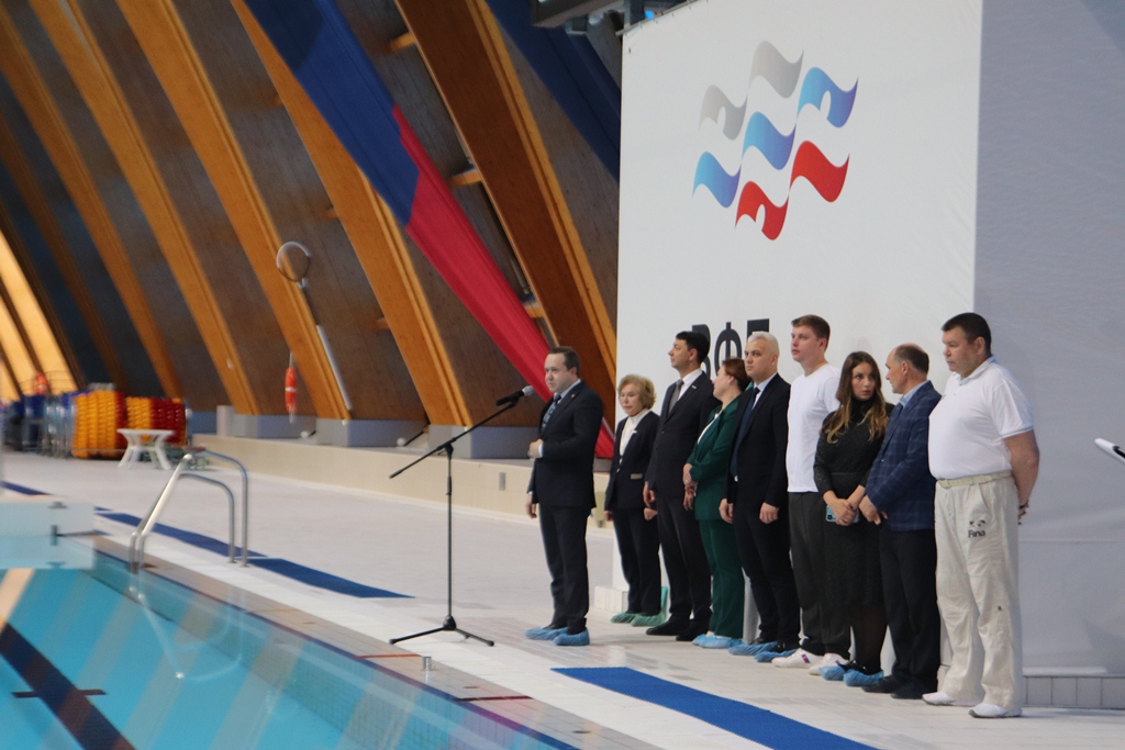 Перед участниками выступил Александр Красных Серебряный призер Олимпийских игр 2020г.,чемпион мира на короткой воде, чемпион и призер чемпионатов Европы, чемпион России, Заслуженный мастер спорта России.