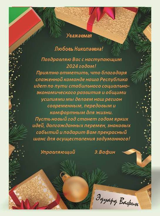 Поздравление управляющего Вафина Э.Я. с Новым Годом!