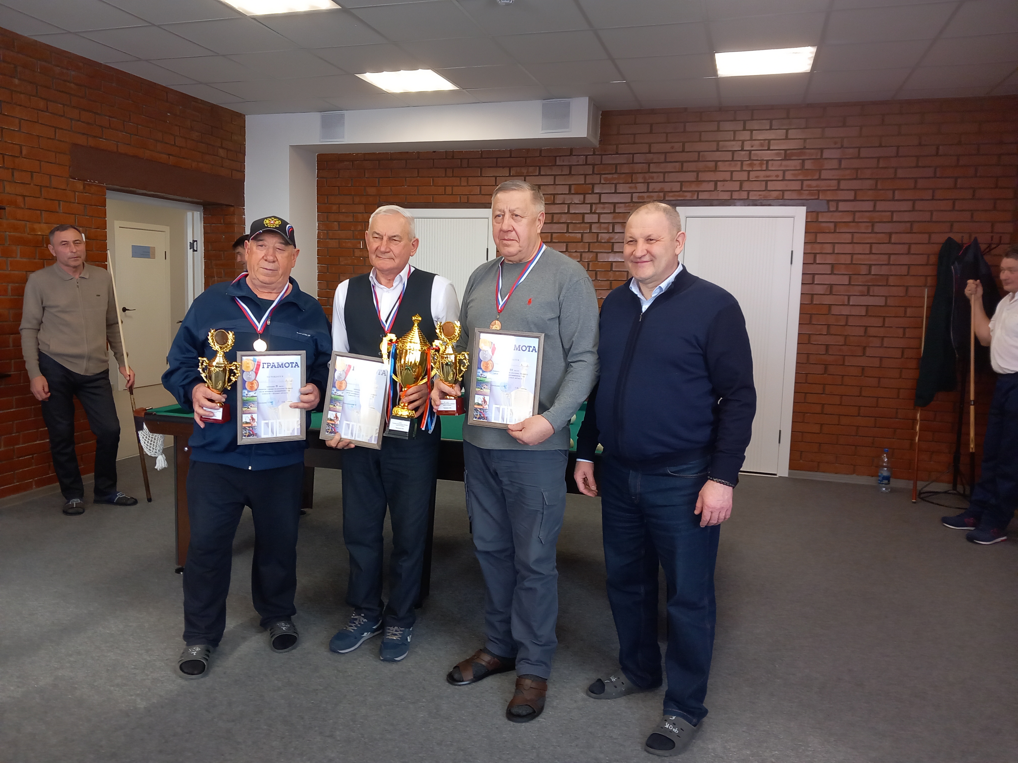 Победителям и призерам соревнований Глава района Айбатов Р.Т. вручил кубки, медали, грамоты и подарки. Среди ветеранов победителем стал активист местного отделения СПР Шайхутдинов С.З.