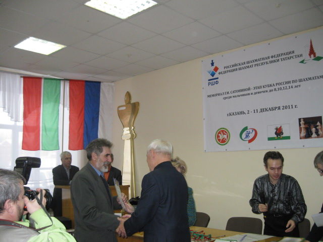 Командам –победителям вручены кубки, медали, сувениры. Федерация шахмат Республики Татарстан вручила победителям команд денежные призы. По решению организационного комитета памятный сувенир вручен самому взрослому участнику турнира Махмутову Рафику Гарифовичу, 1935 г.рождения из г.Елабуга.