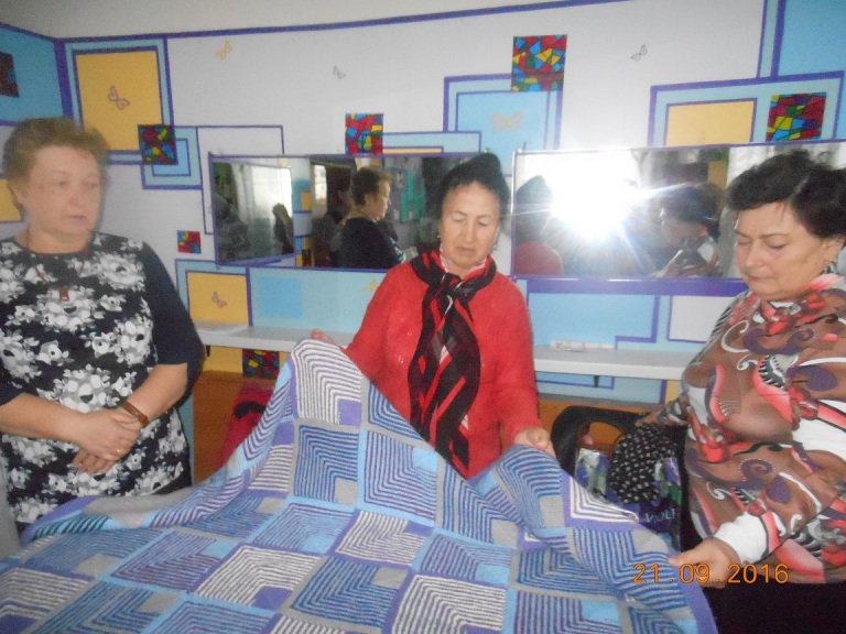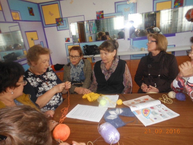 С особым интересом наблюдали пенсионеры и за техникой рукодельного творчества. В ходе мастер-класса руководитель клуба по вязанию «Волшебный клубочек» А. Латипова ознакомила с выставкой прикладного искусства, обучила азам вязания. Рассматривая интересные элементы и мотивы вязания присутствующие невольно задались целью обучиться этому занятию, чтобы радовать родных и близких тёплыми обновками.