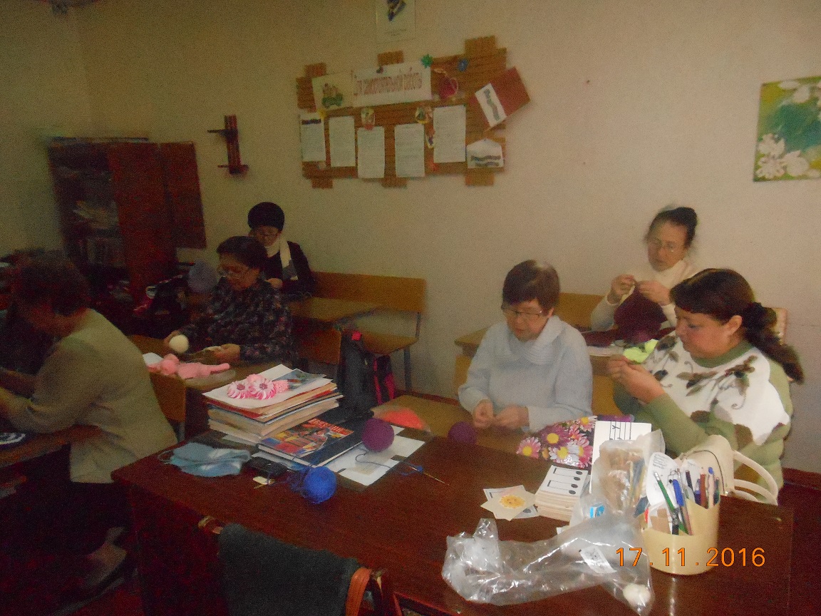 С большим интересом изучает поколение третьего возраста технологию вывязывания замысловатых красивых узоров. А когда получается претворить задуманное в реальность, на душе становится тепло и радостно. Отрадно и то, что здесь некоторые могут совершенствовать свои знания.