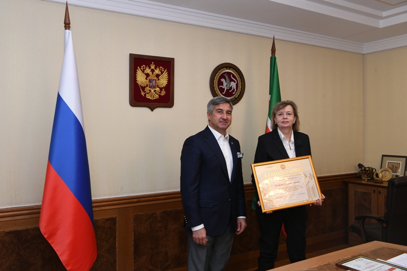 В торжественной обстановке заместитель Премьер-министра Республики Татарстан В.Г.Шайхразиев вручил Кунгурцевой В.Б., Агабекян Р.Х. и Газизову Ф.Г. Благодарственные грамоты Кабинета Министров Республики Татарстан.