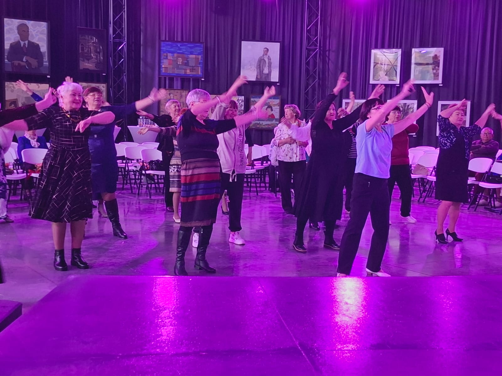Вечер продолжился нестареющим вальсом, викторинами и интерактивами и завершился зажигательным флешмобом в исполнении всех участников