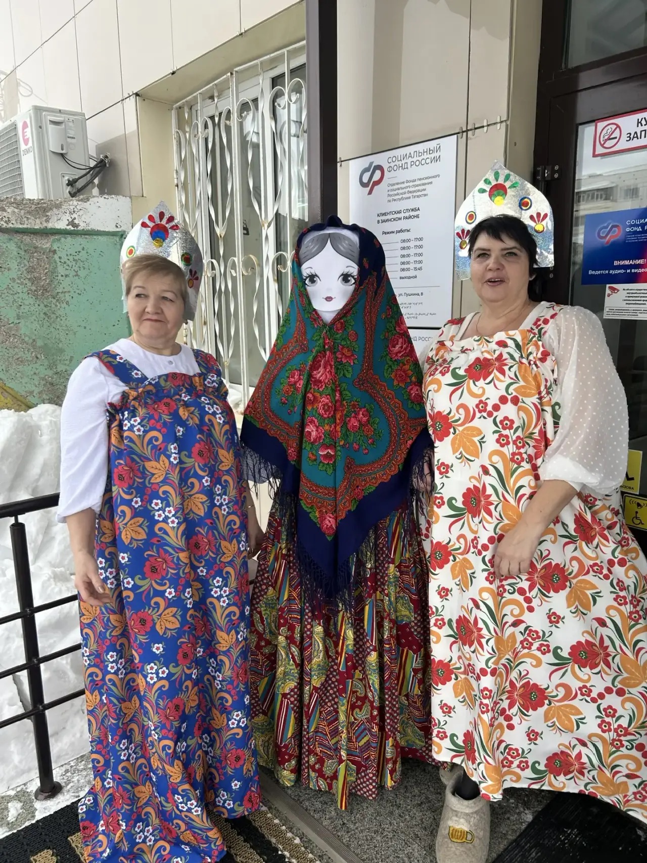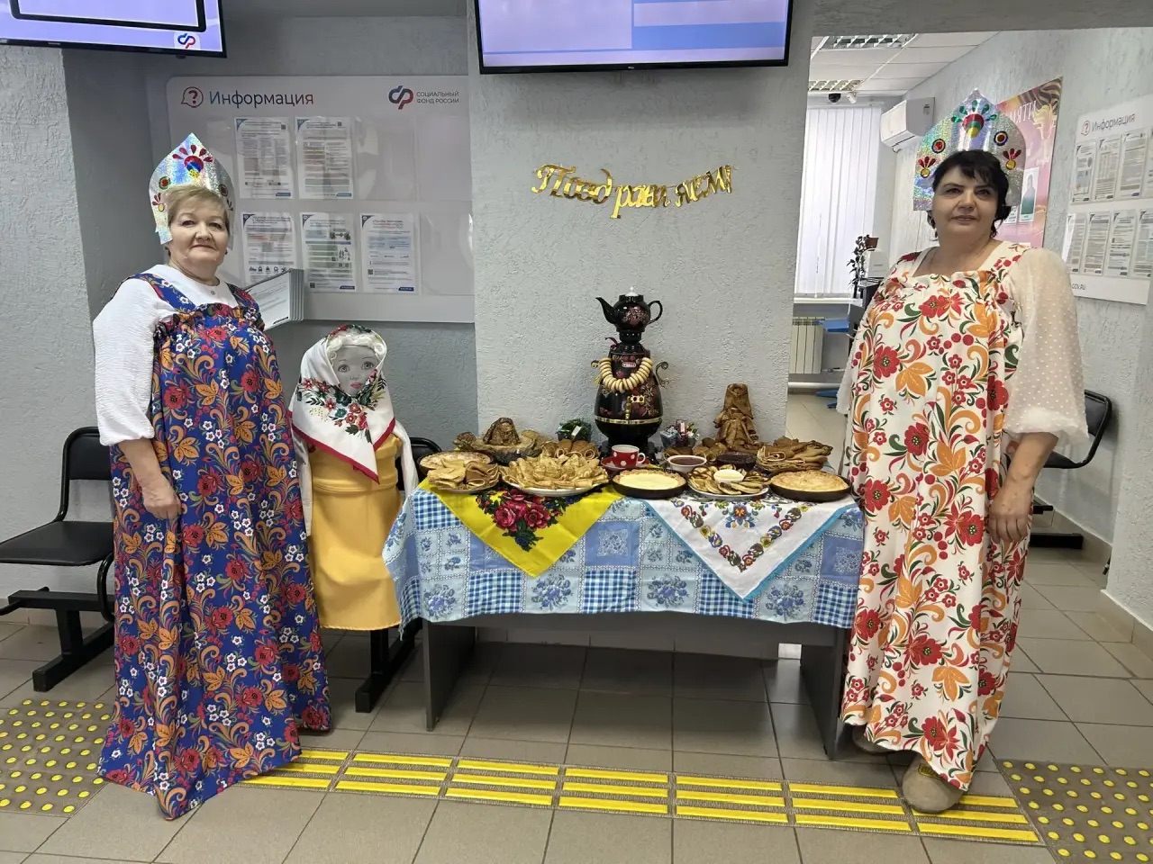 Утро 20 февраля фойе Клиентской службы было празднично украшено: рядом с Куклой-Масленницей была организована зона для чаепития с явствами из блинов. В центре стола стояла красивая блинная кукла. Всех посетителей сотрудники Клиентской Службы в русских сарафанах с шутками и пожеланием здоровья встречали и угощали блинами с горячим чаем. Посетители были приятно удивлены таким теплым приемом.
