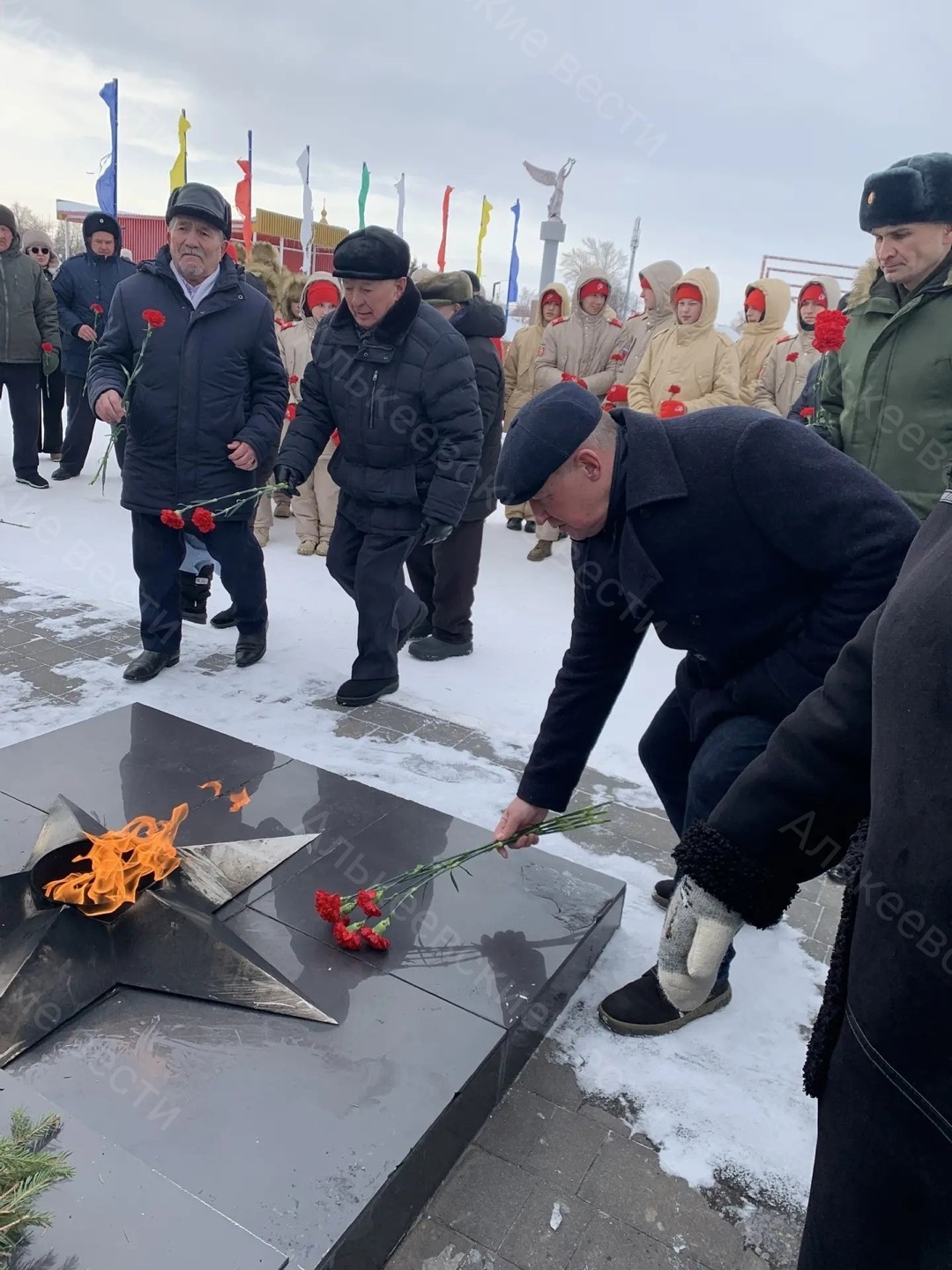 Участники возложили венки и цветы к подножию памятника и почтили память героев, отдавших жизнь за Отечество, минутой молчания.