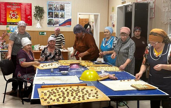 Активисты и члены МО СПР села Алан Тюлячинского района в СДК лепят домашние пельмени для бойцов.